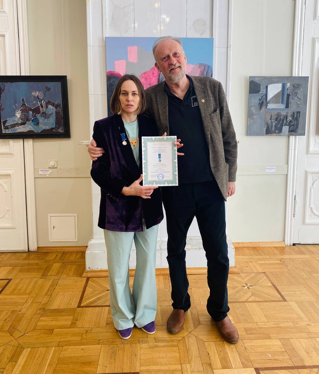 В Московском союзе художников вручили серебряную медаль «За заслуги в развитии изобразительного искусства» нашей Александрине Владимировне Трапезниковой — заместителю декана и преподавателю художественного факультета ГИТР.