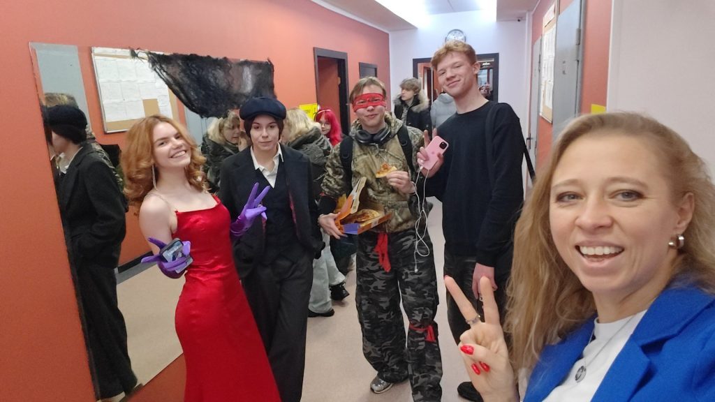 Особенно отличились студенты мастерской «Актер в кино» Ирины Сергеевны Глебовой. Они использовали свои костюмы для серьезной учебной работы: сняли видео-визитки, где один и тот же персонаж — например, вампир или Алиса — проживал все 17 амплуа по системе Мейерхольда. Это превратило праздник в мощный актерский тренинг, показав, как образ помогает в перевоплощении.