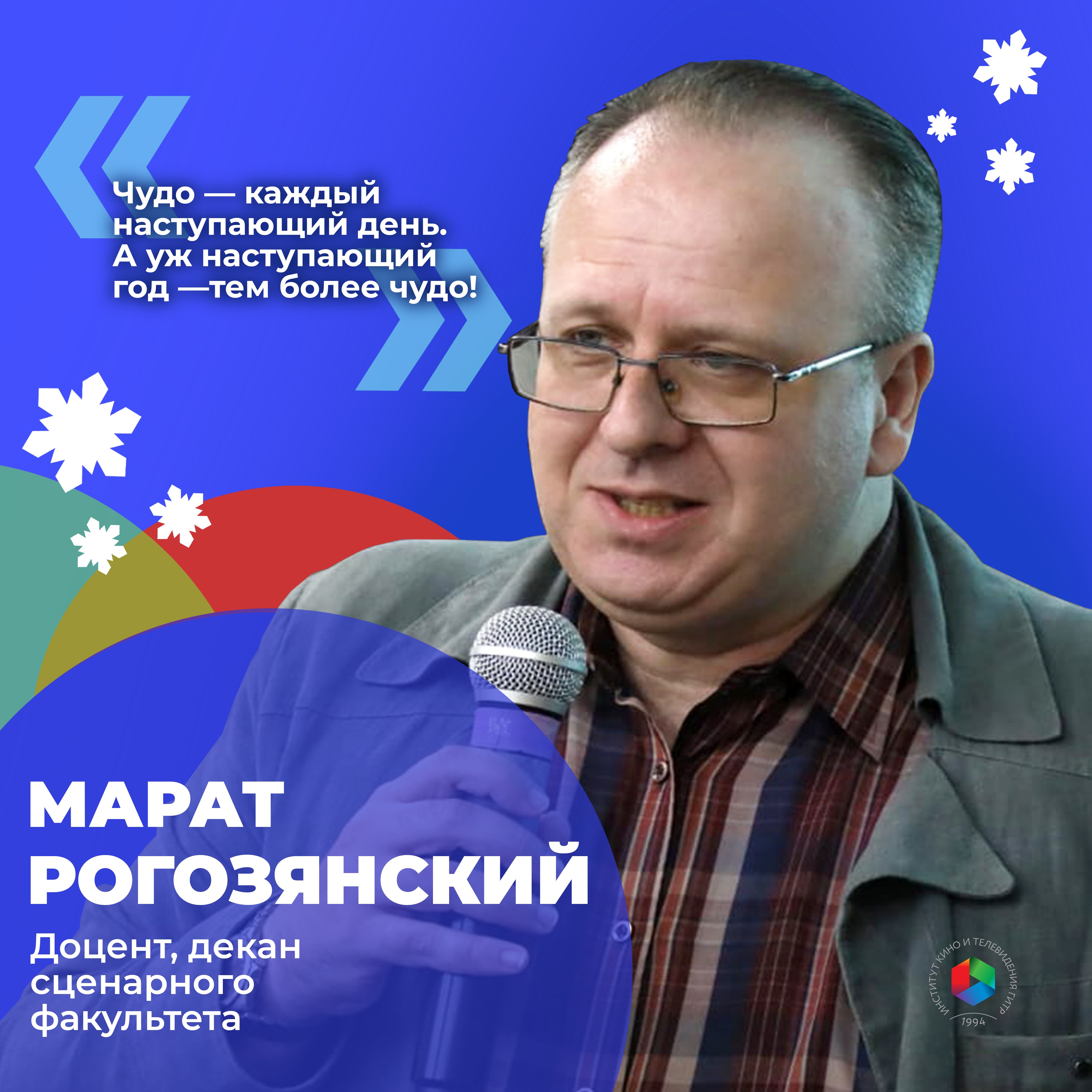 Марат Эдуардович Рогозянский — кандидат педагогических наук, автор и продюсер более 30 документальных фильмов и игровых сериалов. Член Союза журналистов России. Лауреат всероссийских кино- и медиафестивалей: «СМИ: вся Россия», «Берега», Царицинского Александро-Невского фестиваля. Лауреат Литературной премии Правления Межрегионального союза писателей. Кандидат филологических наук. Автор научных публикаций по вопросам экранных искусств. Преподает мастерство кинодраматурга.