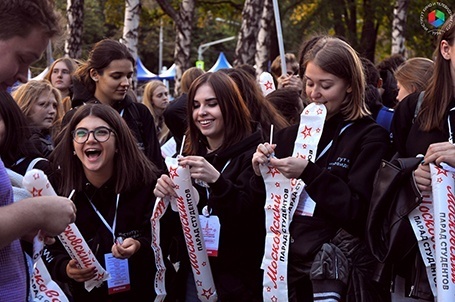 Первокурсницы из МФЮА считают, что «Парад студентов» — необходимое мероприятие, которое нужно проводить каждый год, потому что оно помогает узнавать друг друга».