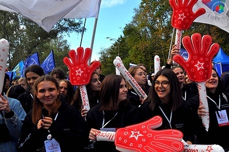 Наша колонна прошла от Университетского проспекта до Воробьевых гор. Весь маршрут проходил с кричалками, танцами и песнями.