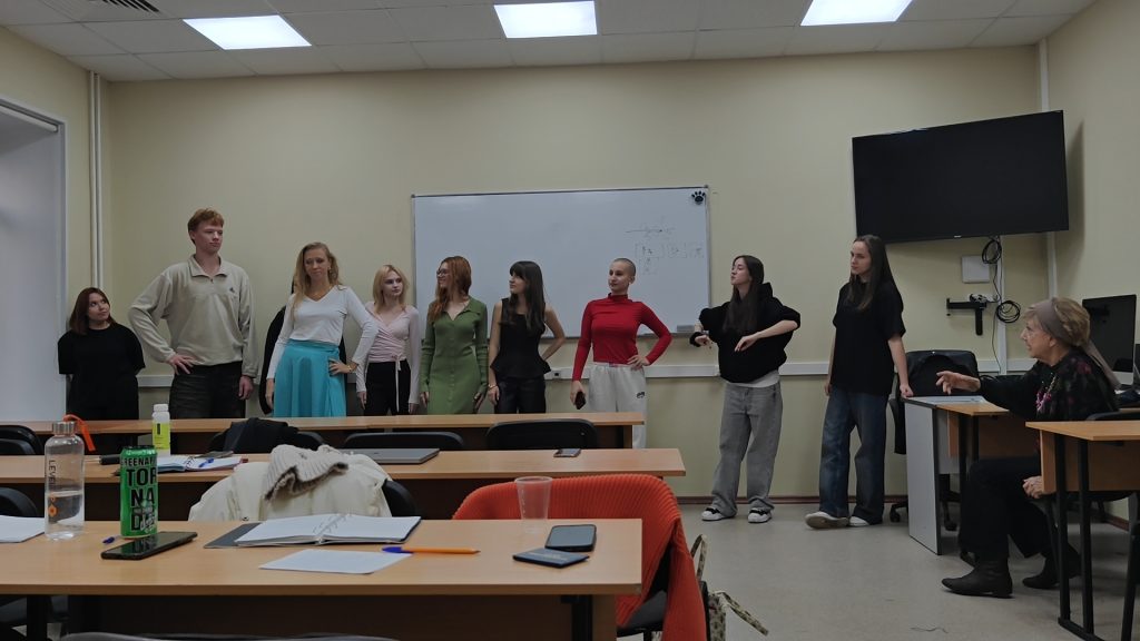 В Институте кино и телевидения (ГИТР) на продюсерском факультете состоялось уникальное событие: мастер-класс провела старейшая актриса театра Моссовета, Маргарита Михайловна Юдина, чья сценическая карьера насчитывает почти 60 лет. В рамках дисциплины «Актёр в кино» студенты-продюсеры погрузились в систему семнадцати амплуа Всеволода Мейерхольда, изучая её не только как теорию актёрского мастерства, но и как практический инструмент для своей будущей профессии.