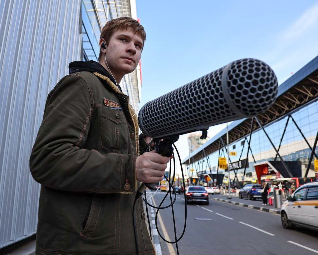 — Съёмка в аэропорту. Было очень приятно работать с нашим оператором в тандеме. Некоторые кадры и звуки получились спонтанно, так как аэропорт — очень насыщенное по событиям место. Было действительно интересно записать уникальный звук там, куда меня не пустили бы с такой аппаратурой, не будь я студентом ГИТРа.