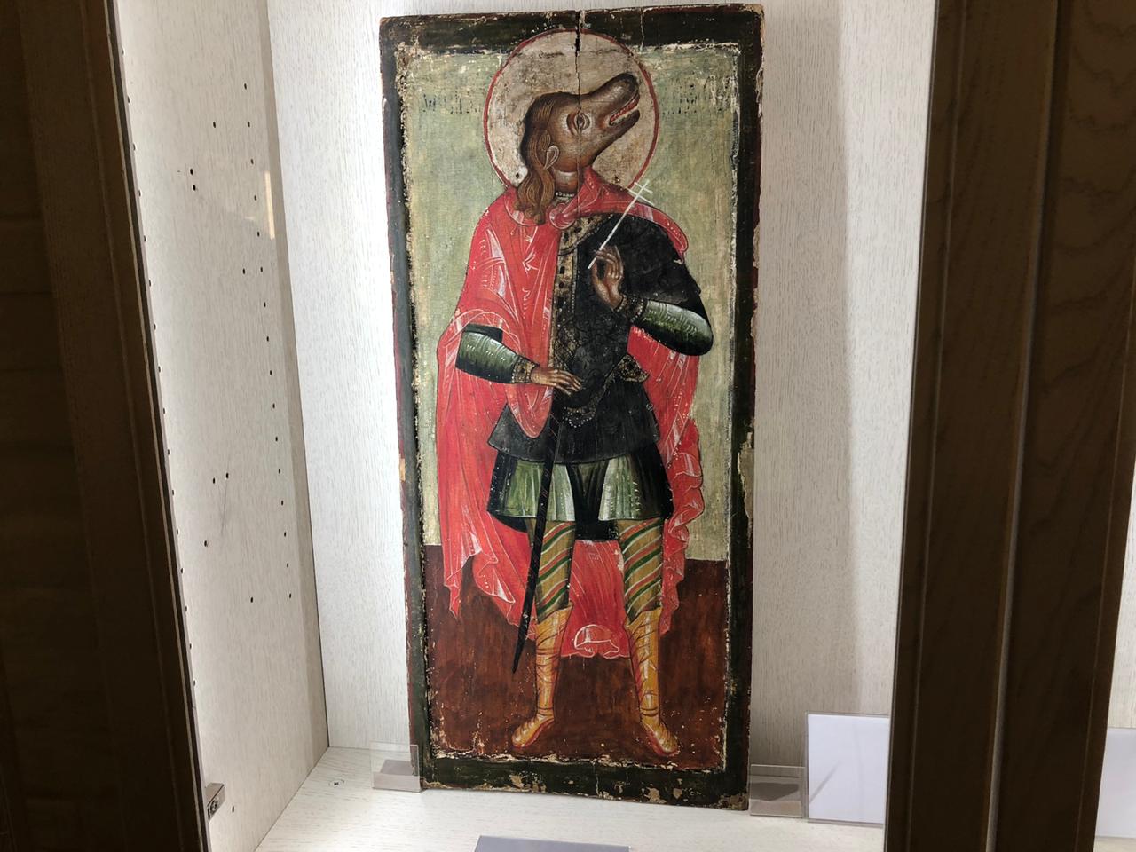 Несмотря на то, что основным и первым организатором выставки является именно библиотека, в зале можно было заметить и другие экспонаты. Прежде всего иконы, одна из которых являет собой совершенно уникальное творение кисти неизвестного мастера. Несмотря на то, что подпись на ней говорит о том, что там изображён архангел Михаил, историки сомневаются в корректности данного определения. По словам главного организатора выставки С.В. Архиповой, совершенно точно можно определить архангела Рафаила – покровителя путешественников и медицины. Икона крайне примечательна тем, что архангел изображён с двумя ртами. Верхний – закрыт, нижний – открыт в немом пении святого.