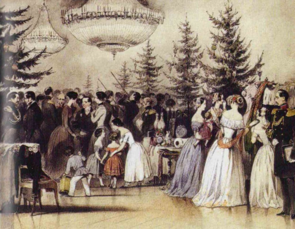 Рисунок А. Чернышева из «Альбома с рисунками, изображающими семью Николая I». 1848 г. Источник: Е. Душечкина. Русская елка : история, мифология, литература. — СПб., 2012.