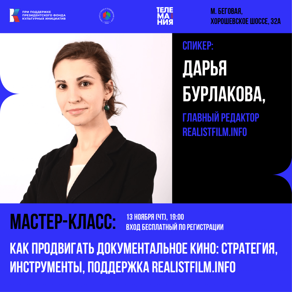 спикер: Дарья Бурлакова, главный редактор REALISTFILM.INFO