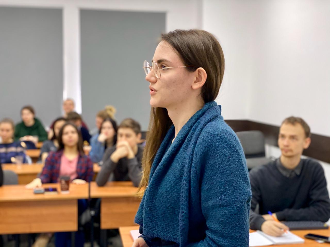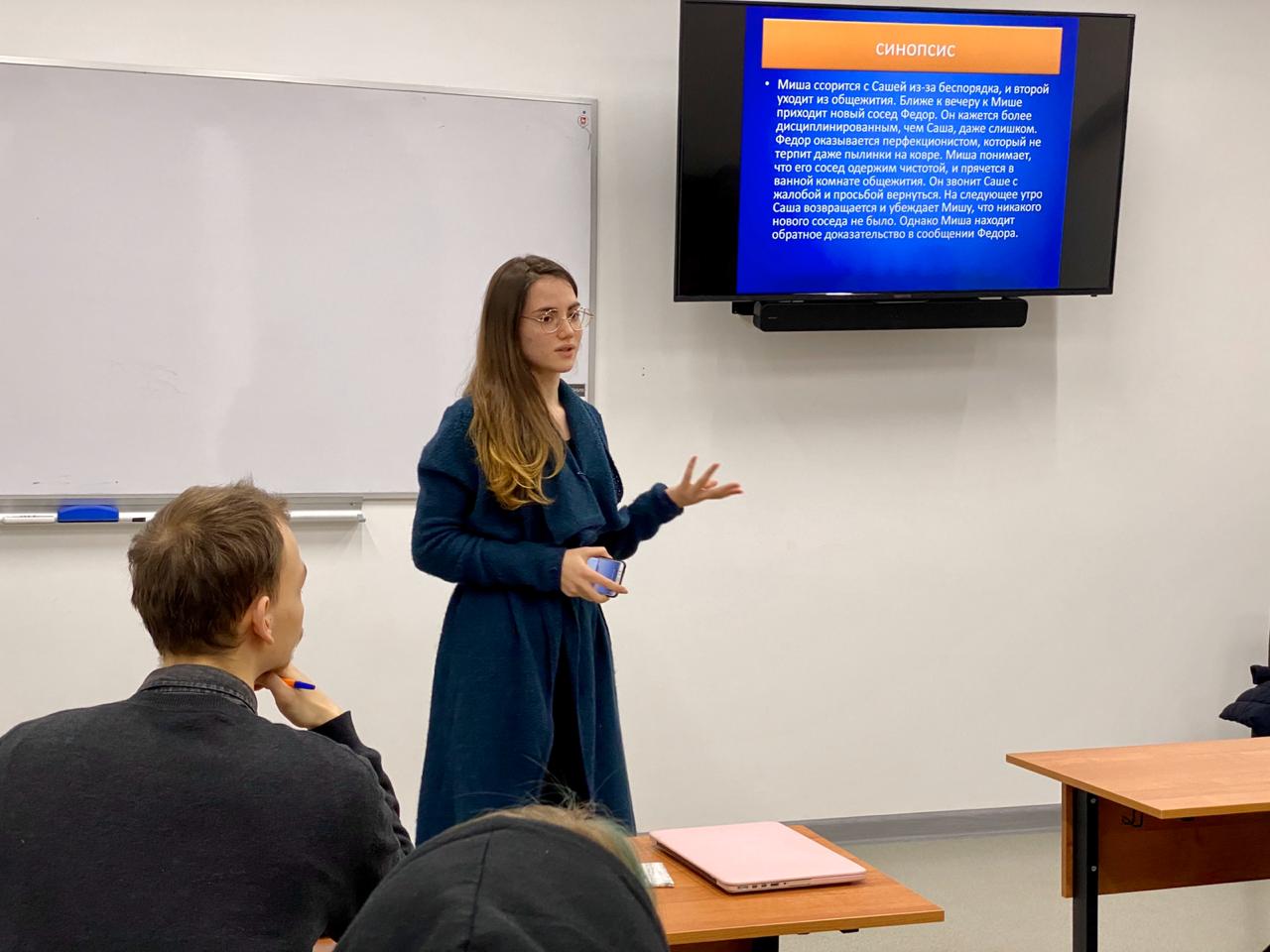 Студентка Лиза Успенская презентовала два комедийных сценария «Лучшее свидание» и «Лучший враг» о проблемах современного общества.