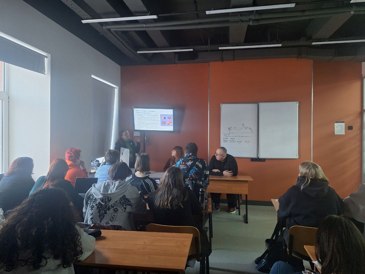 «Прочитала лекцию о своих любимых наночастицах, подходах к получению и применению в биологии и медицине, как обычно творчески и научно-популярно. Ребята слушали с интересом и задавали по-настоящему глубокие вопросы! – поделилась в своем ТГ-канале Полина Рудаковская. – Спасибо большое за такую возможность организаторам и за интереснейший опыт и прекрасный прием коллегам из ГИТР!». Интерес оказался взаимным – не только сценаристы интересуются наукой, но и ученые интересуются кино и кинообразованием. Зав. кафедрой драматургии Елизавета Трусевич и декан сценарного факультета Марат Рогозянский провели для Полины Рудаковской экскурсию по ГИТРу. Вуз нашей гостье очень понравился, впечатлила техническая оснащённость и творческая атмосфера.