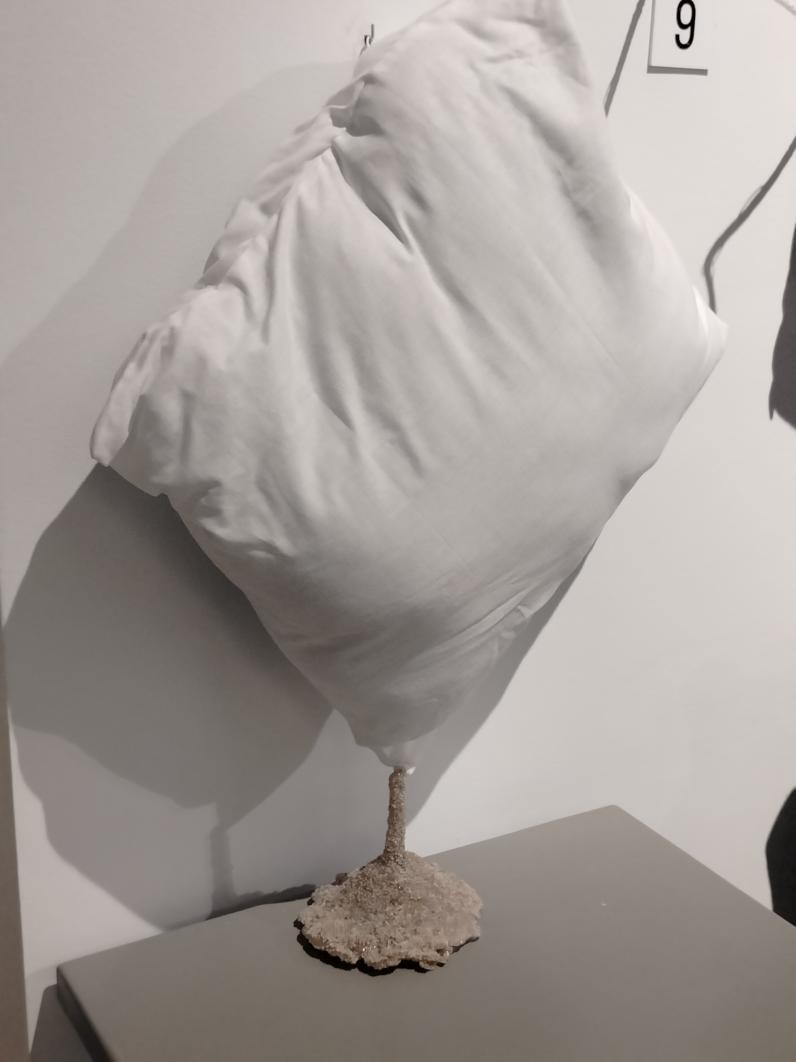 «Основной идеей было показать, что люди иногда воспринимают сон слишком буквально, и для них недосыпать равноценно сыпаться. То есть, когда они не получают достаточно сна, они рассыпаются, потому что у них нет сил. Поэтому я отобразила это с помощью эпоксидной смолы и песка в своей подушке. Для меня очень важно показать, насколько важен для нас сон, что это такой же базовый минимум как умывание или еда».