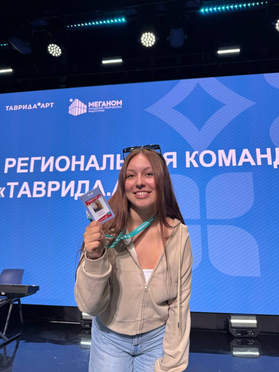 Летом 2025 года фестиваль молодого искусства «Таврида.АРТ» успела посетить и студентка факультета журналистики Александра Шатилова — в роли волонтёра направления SMM.