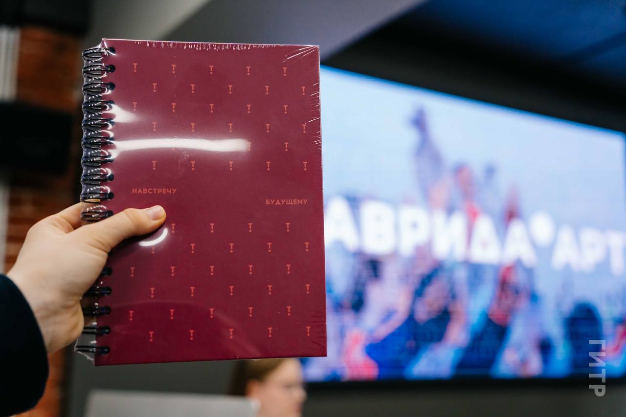 В конце презентации представители «Таврида.АРТ» поздравили студентов с предстоящим праздником и вручили подарки: стильные блокноты. Помимо места для записей, в них содержится подробная информация о каждом проекте, а также небольшие интерактивные задания: «Зелёное бинго», советы по созданию собственных творческих проектов и многое другое.