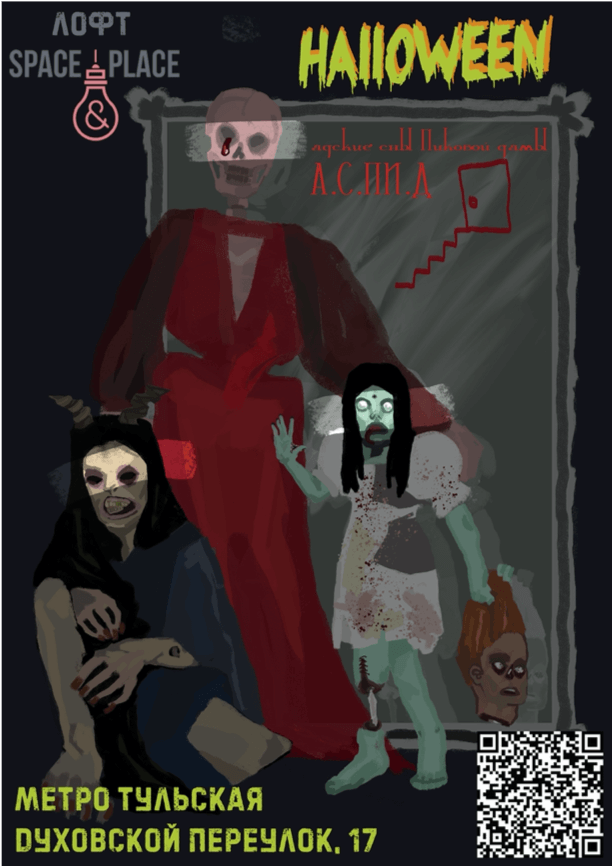 Гостей ждет отдельный лофт, дискотека, фотозона, квест в реальности и отдельное место для просмотра ужастиков.