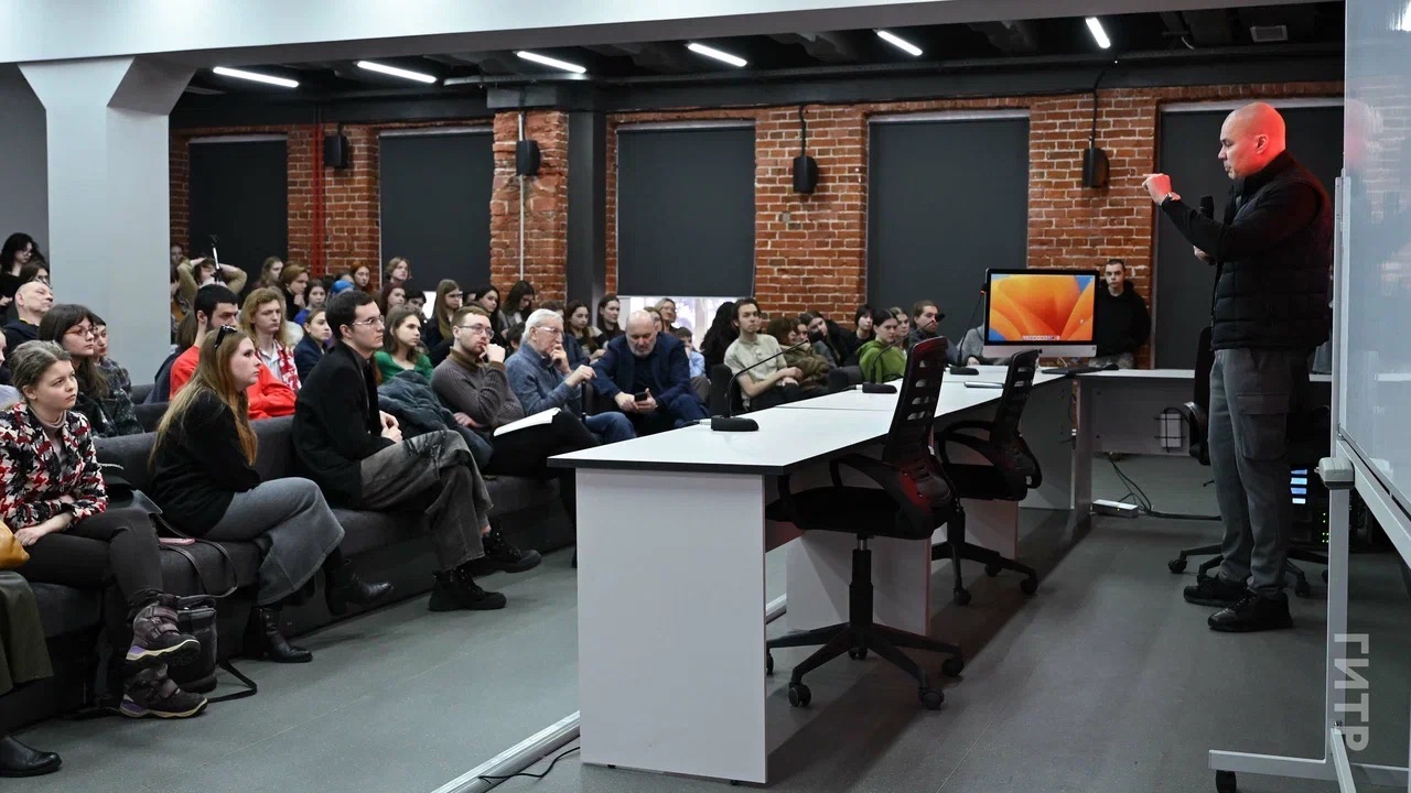 После кинопоказа перед студентами ГИТРа выступал сам автор – журналист, заместитель генерального директора по радиовещанию ВГТРК, Андрей Андреевич Медведев.