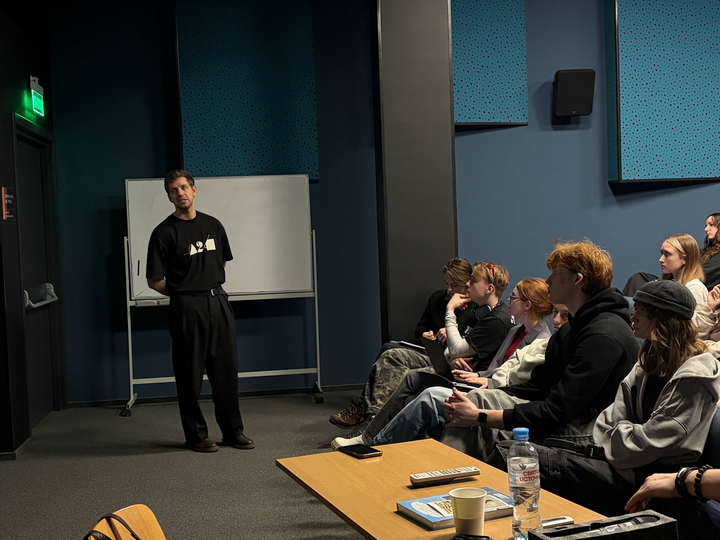 После спикер отвечал на все вопросы, которые очень волновали студентов. Даже мастер продюсерского факультета Георгий Юрьевич Рюмин, который и организовал встречу, решил тоже поучаствовать в дискуссии и узнать: почему в советском кино герой по сюжету не меняется, но все также кажется очень глубоким? На что Москвитин дал очень простой и понятный ответ: