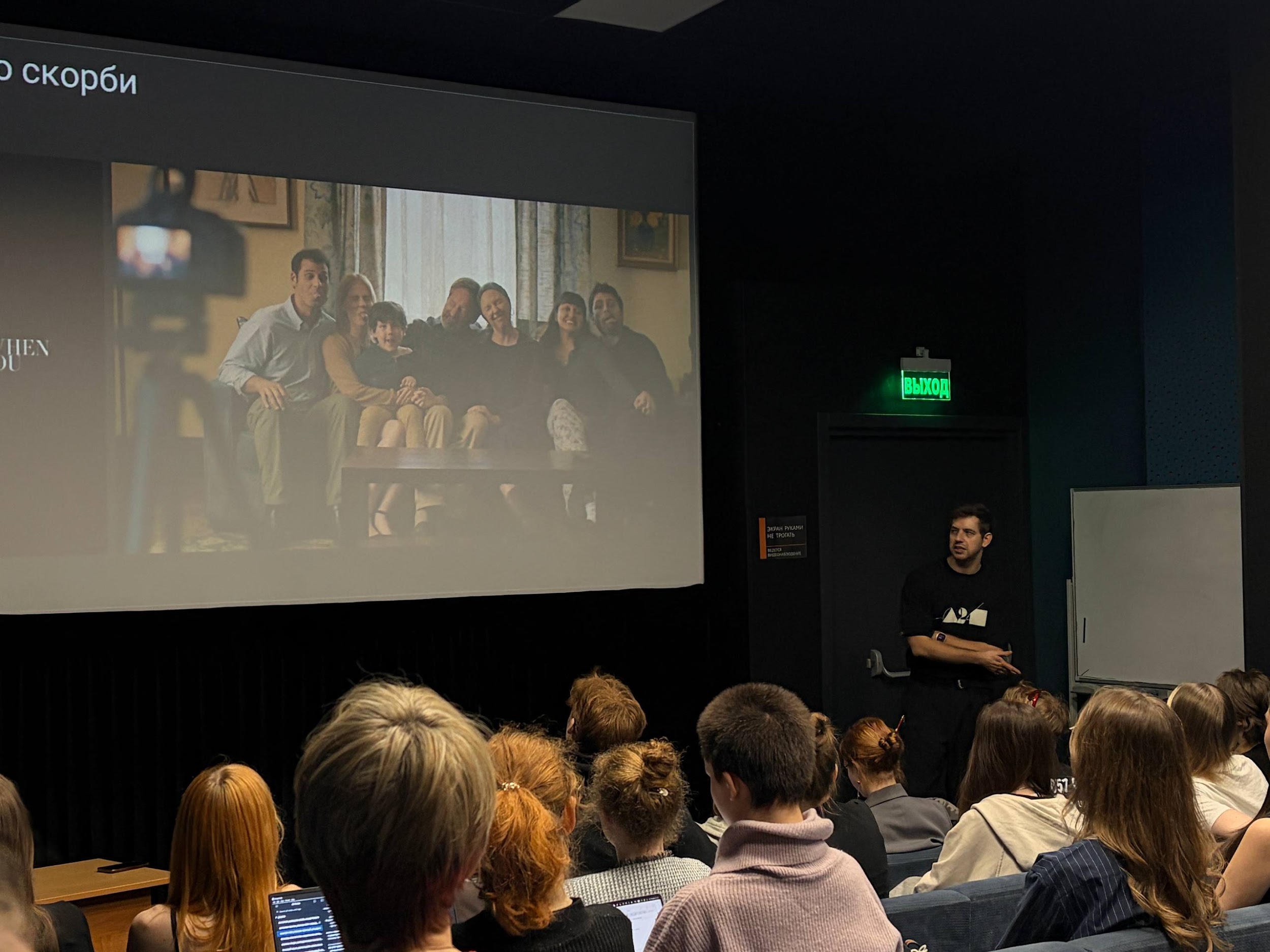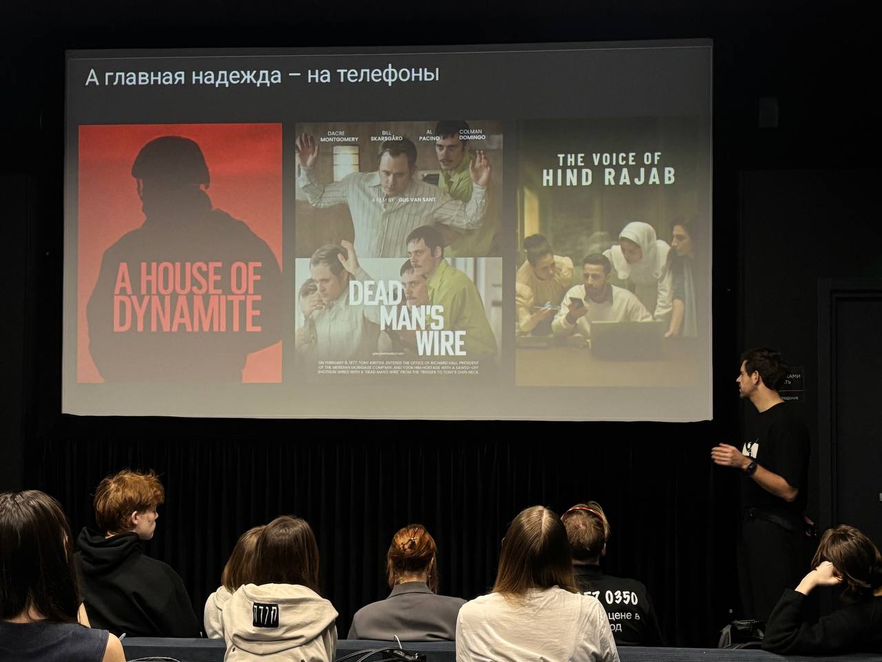 На мастер классе Егор разобрал несколько фильмов прямо перед студентами, отмечая на что он обращает внимание в своих разборах и как углубляется в историю создания фильма, ведь важно знать контекст.