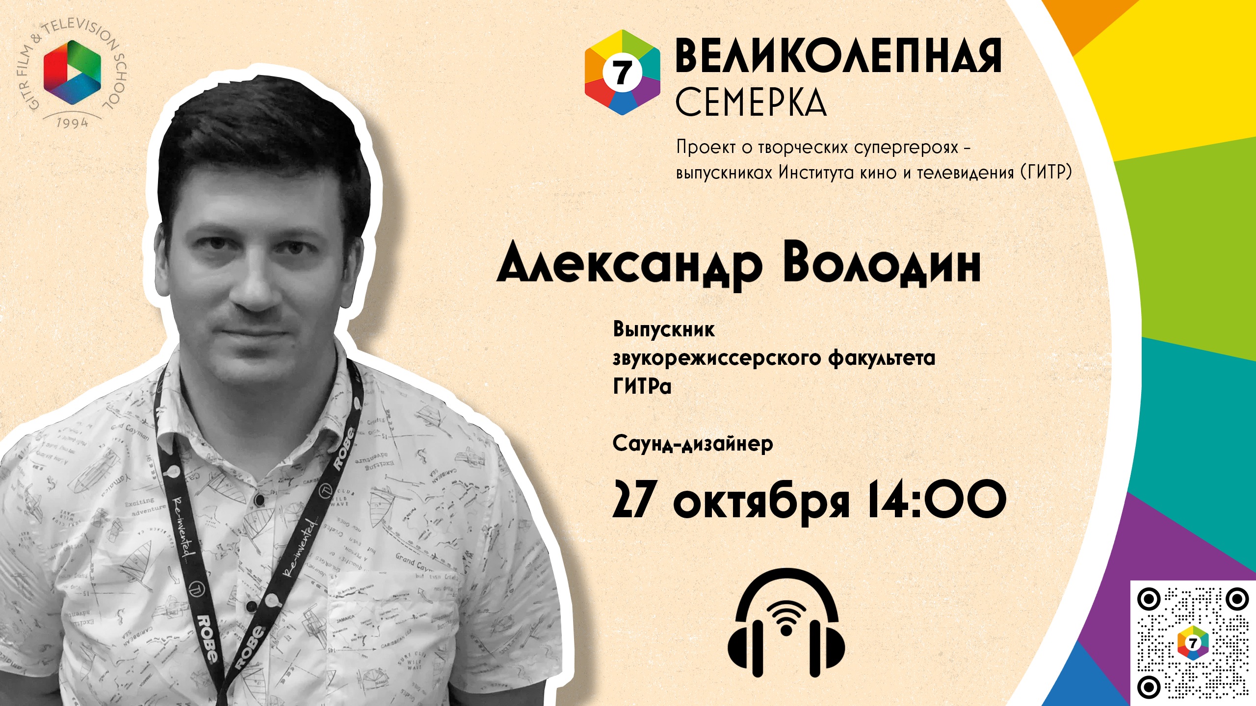 27 октября в Институте кино и телевидения стартовал грандиозный проект «Великолепная семёрка». В нём примут участие выпускники всех семи факультетов ГИТРа. Люди, которые многого добились, но не собираются останавливаться.